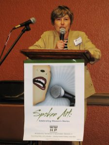 • Leah Shoshana played the guitar and she and Kimberly Goldbaum sang songs in solidarity with the women’s and labor movements, while the audience enthusiastically sang along to “Union Maid,” a particular favorite of Helen’s. WWHP treasurer Ken Morris opened the event by playing guitar. Later, Ken and Joan Morris performed the song “Sigh No More” with lyrics by William Shakespeare.